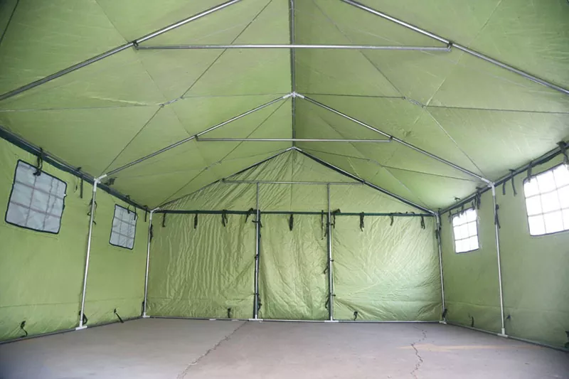 Vexillum figurae 5×6m Constructionis Tabernaculi duas portas et sex fenestras includit, curatores faciliores accessum, luminationem naturalem et circulationem aeris. Fenestras capere eget structuram pattered cum aulaeis independentibus, ut ambae procurationes secundum necessitates functiones fiant.